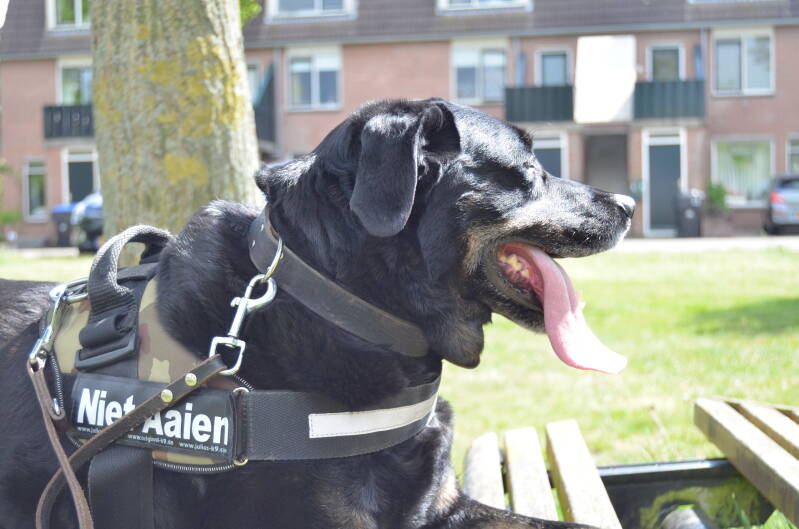 Arko accepteert het wel en ik kan de Muilkorf ook wel om doen, maar daarna probeert hij wel om het weer af te krijgen. Dus hier gaan we de komende tijd nog mee bezig.