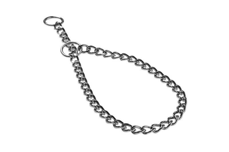 Het is bij een ketting belangrijk dat er dus geen continue spanning op staat, want dat kun je wél je hond verstikken!