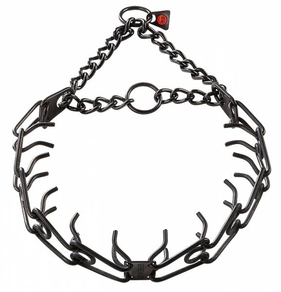 Dit is als het ware een mix tussen een halsband en een slip ketting. Als je geen slipketting wilt gebruiken, maar wel iets met meer en betere druk (verdeling), is dit wellicht een goede keus.