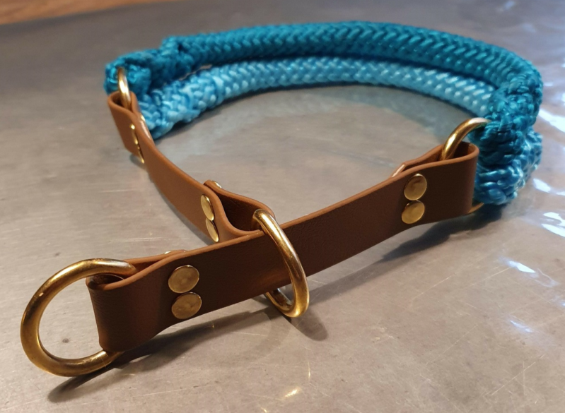 De halsband hiernaast valt onder de term "Half-slip", omdat het deels dicht slipt. Het hoort dus ook een beetje bij de Martingaal, maar dan net even anders.